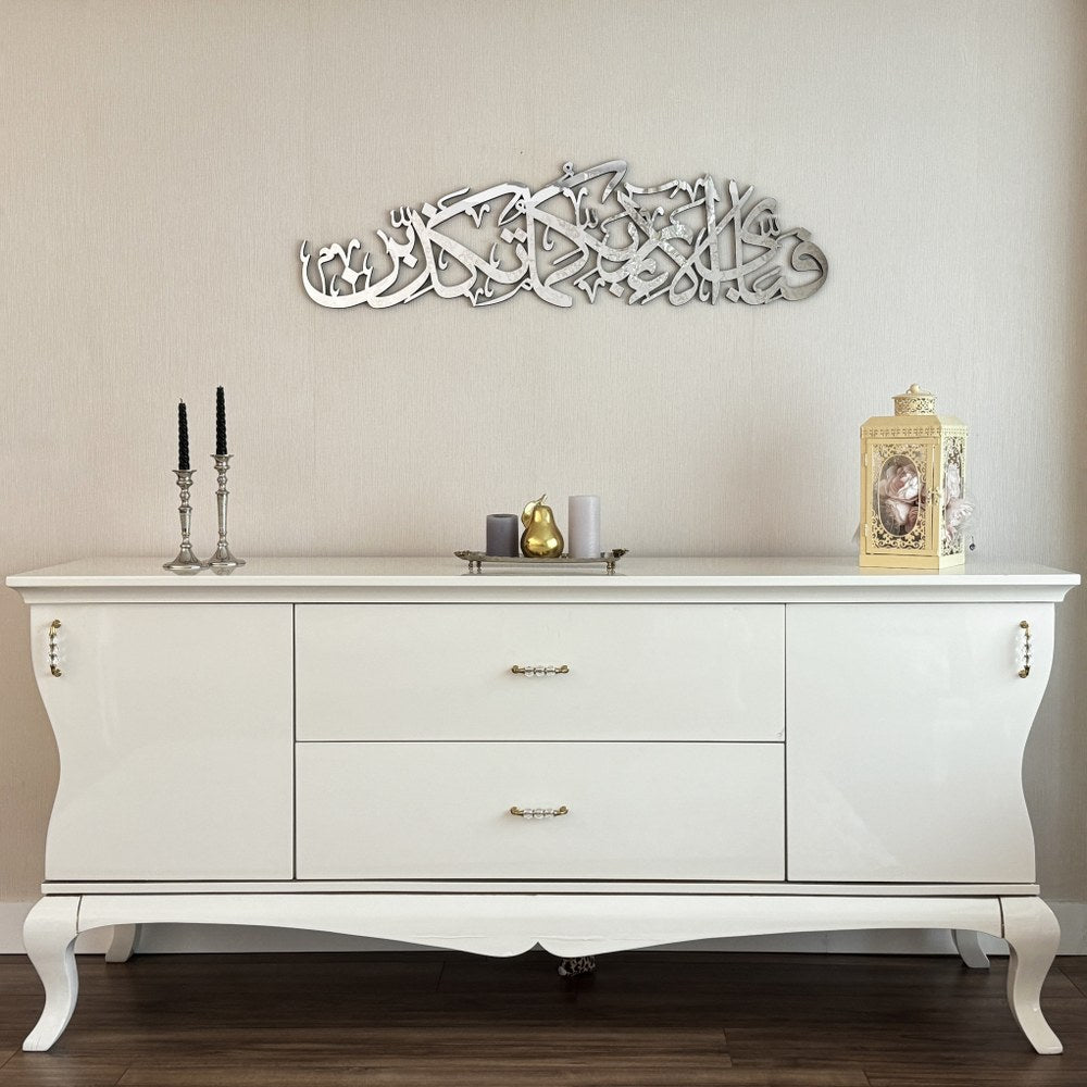 This art piece features the impactful 13th verse of Surah Rahman, "Fabi ayyi aalaa'i Rabbikumaa tukaththibaan," beautifully rendered in elegant Islamic calligraphy. Crafted with a blend of natural wood and sleek acrylic, this decor item offers a contemporary twist to traditional Islamic art. It's a perfect addition to your Islamic home decor, providing a constant reminder of divine blessings and mercy. Ideal for Ramadan Decor or as a meaningful Eid Mubarak gift, it resonates with both beauty and faith, making it a significant piece of Quran wall art for any believer's home.