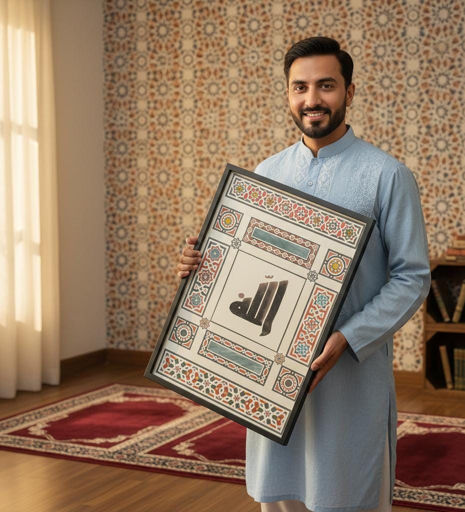 Let your walls speak the language of peace with the Baraka Poster - a frame that radiates calm, beauty, and spiritual warmth. At its heart lies the sacred name of Allah, embraced by intricate geometric patterns drawn from the depths of Islamic heritage. This isn’t just something to hang - it’s something to feel. A presence that softly fills your room with light, reflection, and tranquility.