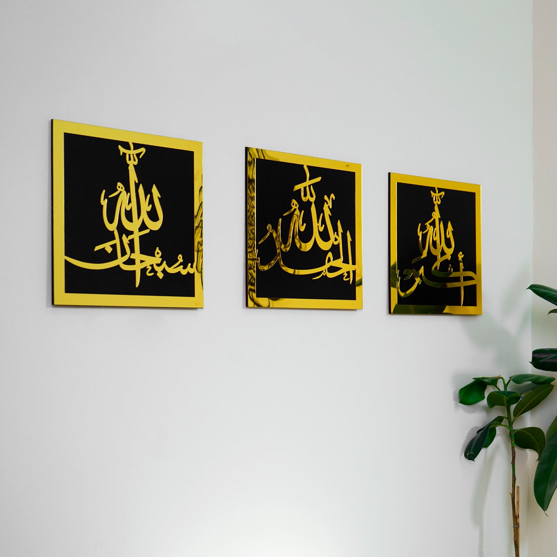 Each expression, from "SubhanAllah" acknowledging Allah's perfection, "Alhamdulillah" expressing gratitude for His blessings, to "Allahu Akbar" affirming His greatness, is elegantly captured in Islamic calligraphy. This artwork is a beautiful addition to Islamic home decor, reminding one of the constant presence of Allah's grace, ideal for daily inspiration as well as during special occasions like Ramadan Decor and Eid Mubarak, embodying the depth of Islamic art and Quran wall art.