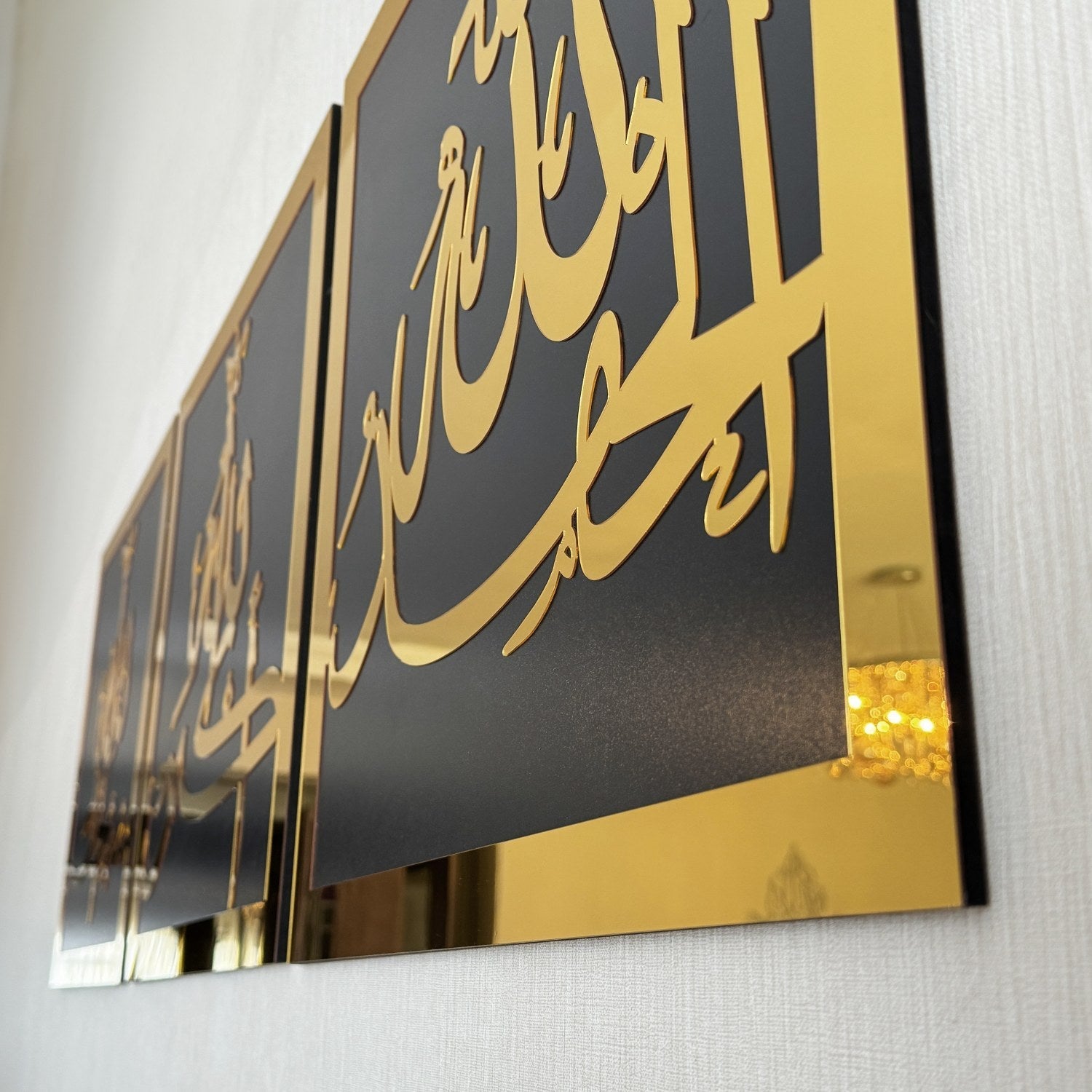 Celebrate the essence of Islamic gratitude and praise with our SubhanAllah, Alhamdulillah, Allahu Akbar Wooden/Acrylic Islamic Wall Art, a piece that artistically portrays these profound Arabic phrases.